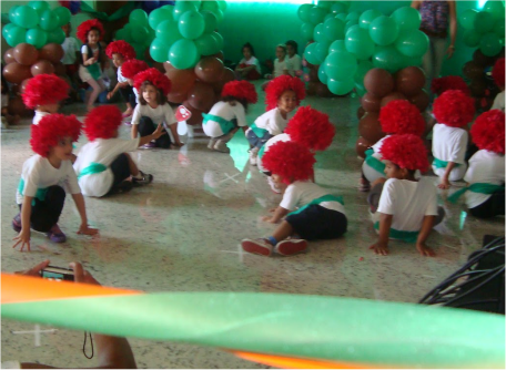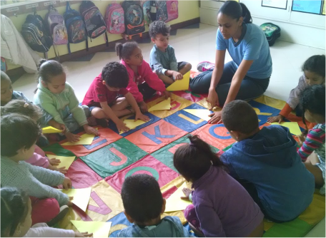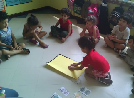 Cuidado com o corpo, alimentação, brincar, roda de história, roda de conversa, cantos e contos de atividades diversificadas.